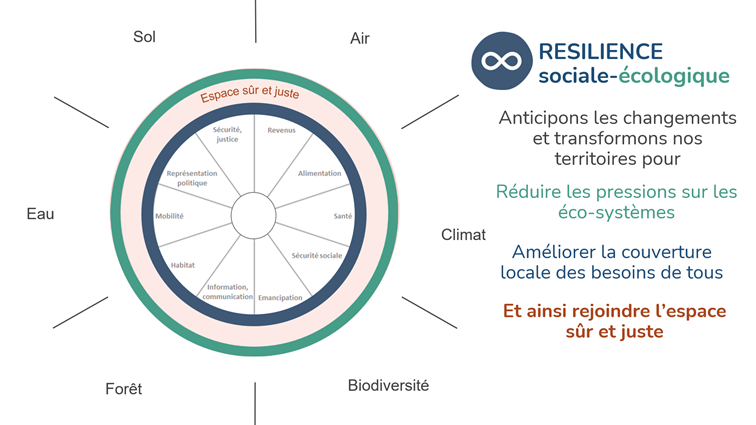 L’outil, conçu par Energie Commune, Espace Environnement et l’Institut Eco-conseil a été construit en pensant les humains et la nature comme un système social-écologique et en intégrant le modèle du Donut4.