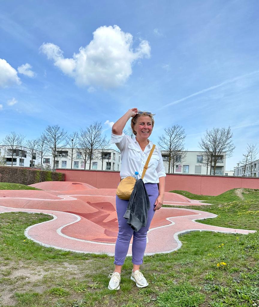 La photo de Sophie a été prise en 2023 durant la visite à Munich dans le nouveau quartier Messestadt Riem, par l’un.e de ses étudiant.es de la HeCh Immobilier.