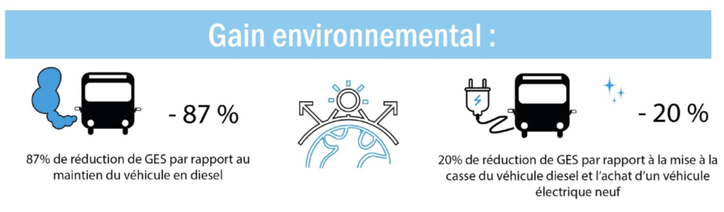 Gain environnemental du rétrofit électrique d’un bus de 12m. Télécharger l’infographie