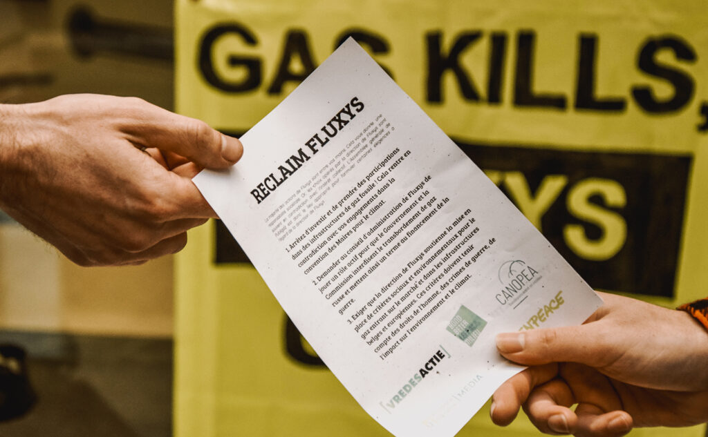 Des représentants des ONGs Vredesactie, Greenpeace Belgique, Bond Beter Leefmilieu, Promote Ukraine et Canopea ont rencontré le directeur de Publigaz et de Fluxys, Andries Gryffroy, alors qu’il se rendait à l’Assemblée générale de Publigaz qui se tenait ce jour à Bruxelles. Elles ont demandé aux communes de jouer véritablement un rôle actif dans la politique d’investissement et dans le positionnement de Fluxys.