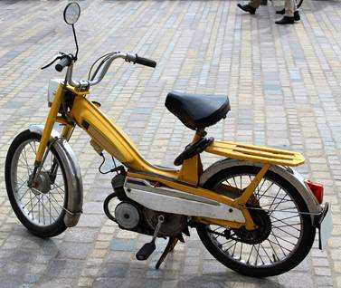 Note : tout bien réfléchi, le véhicule de mobilité « passive » moderne le plus proche d’une mobylette, hormis le scooter, est plutôt la trottinette qui, à l’instar de la mob, ne nécessite pas d’effort physique.