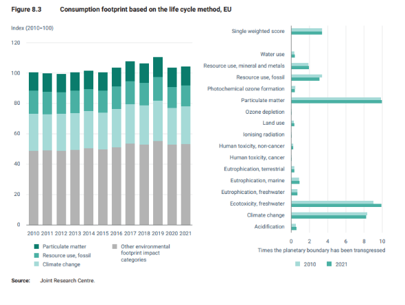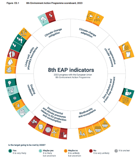 L’Agence Européenne de l’Environnement a publié en décembre sa 8ème évaluation de sa politique environnementale dans laquelle elle évalue si nous sommes en route pour atteindre les différents objectifs pour 2030 fixés dans le cadre de son « Green Deal », que ce soit en matière de climat mais aussi de pollution ou de biodiversité.